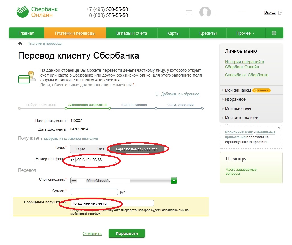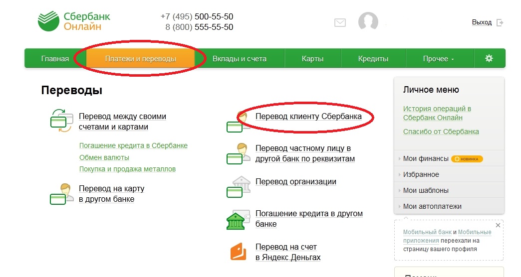 2. Выбираете в меню "Перевод клиенту Сбербанка"