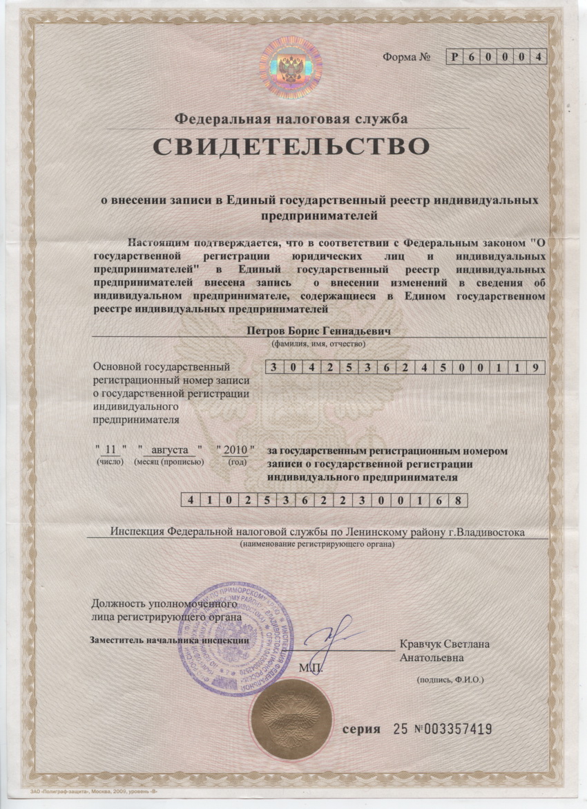 Индивидуальный предприниматель Петров Борис Геннадьевич