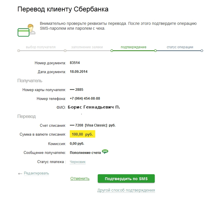 2. Выбираете в меню "Перевод клиенту Сбербанка"